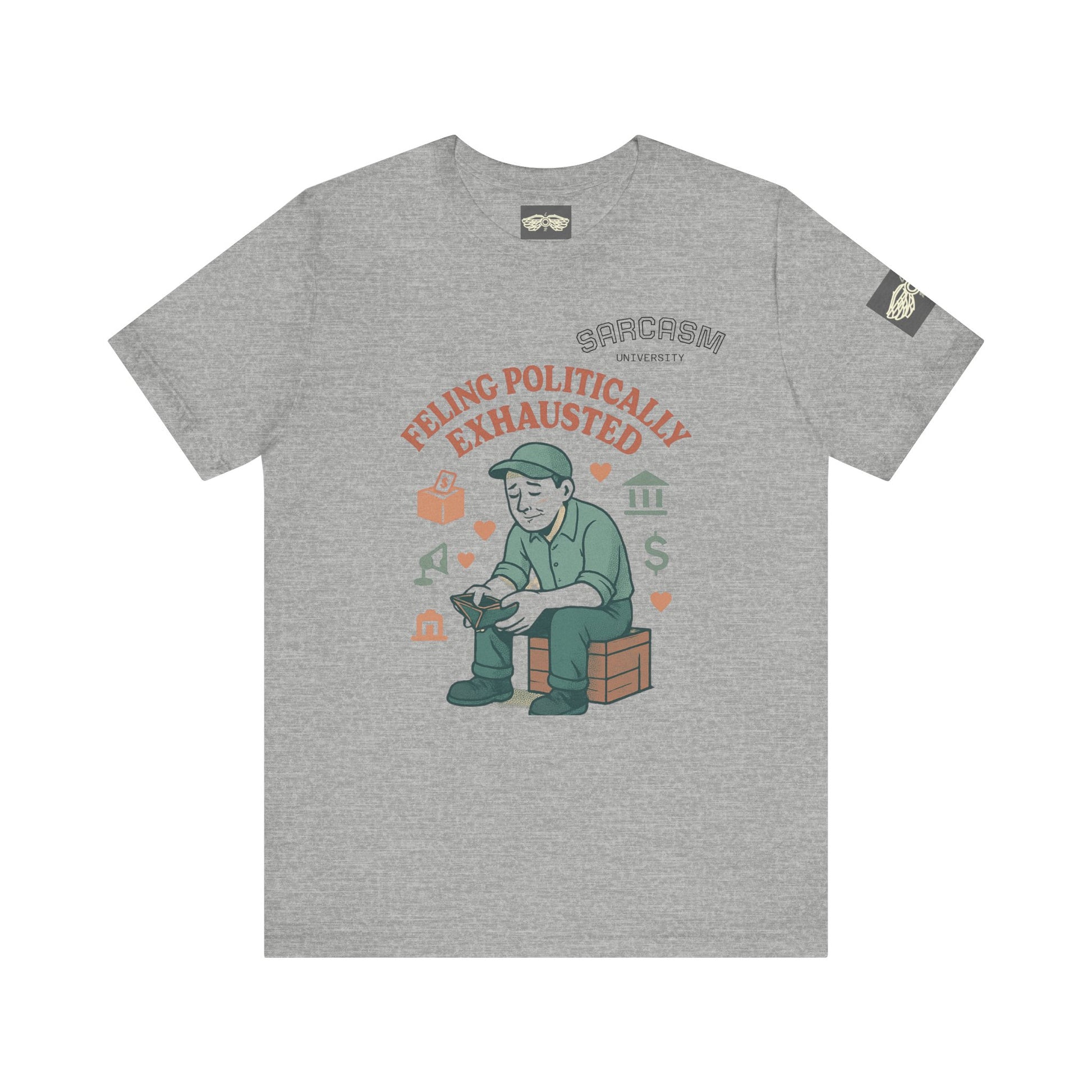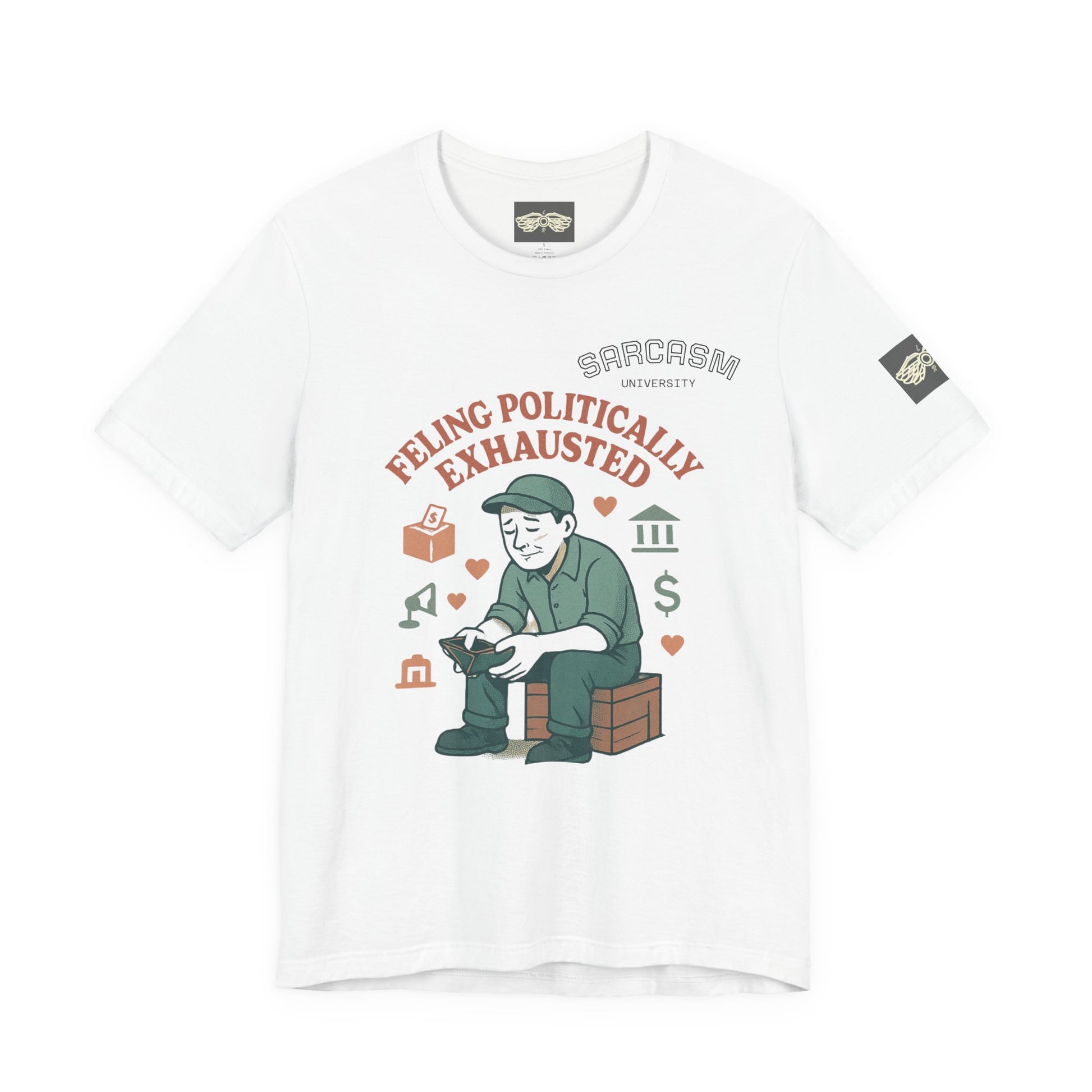 Sarcastic Political Exhaustion Tee — Broke & Overworked Cotton T-Shirt